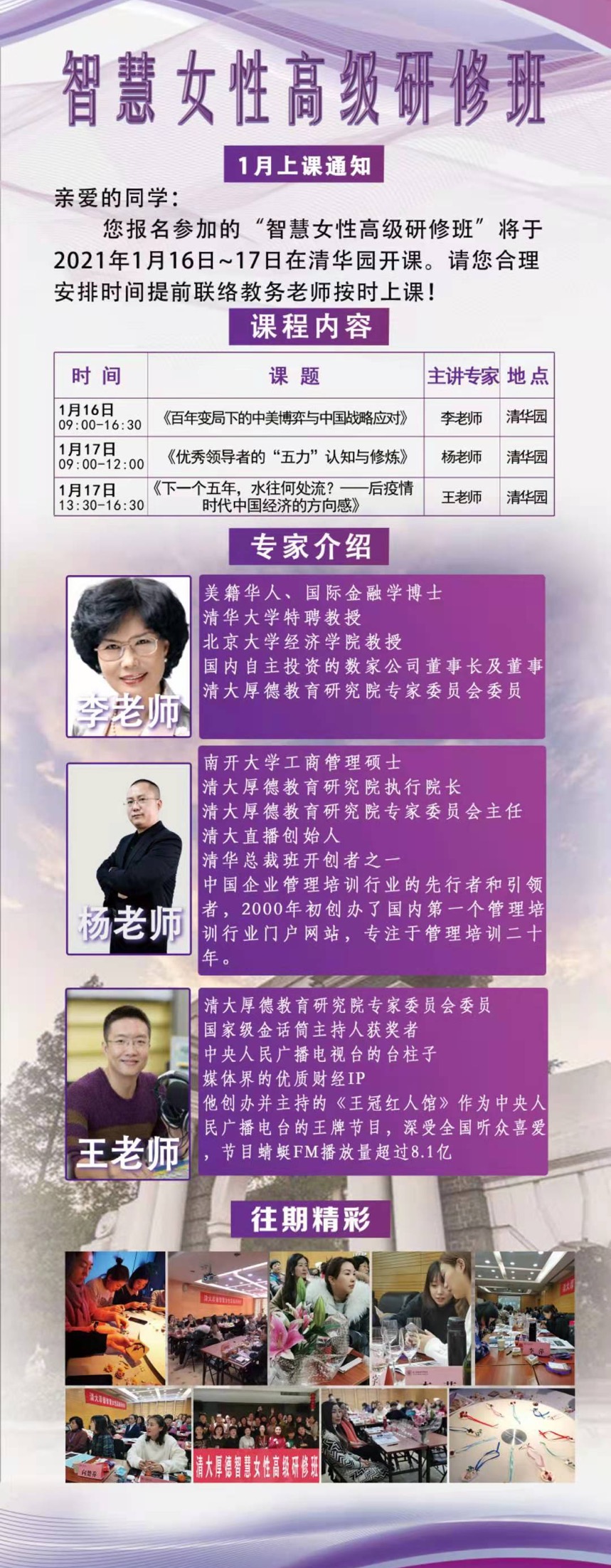 上一篇:成年女性适合报哪些培训班?2021清大厚德智慧女性高级研修班