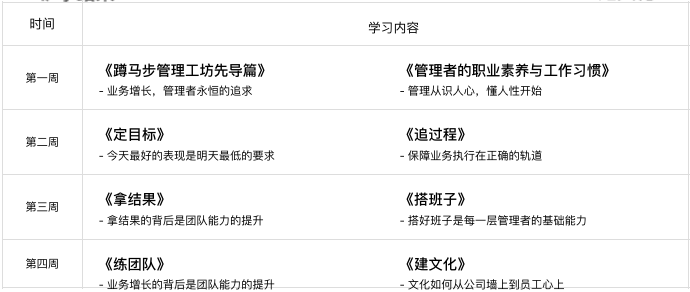 结合工作真实场景, 22天刻意训练,管理能力快速突破 。5000+企业的管理者实践有效