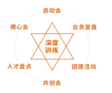 深度训练:启动会、裸心会、人才盘点、共创会、 团建活动、复盘会