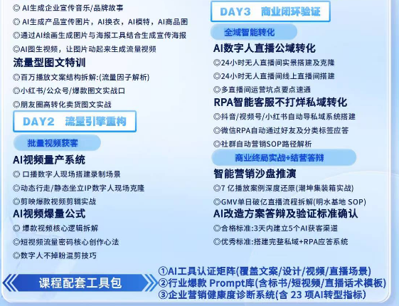 ①AI工具认证矩阵(覆盖文案/设计/视频/直播场景)