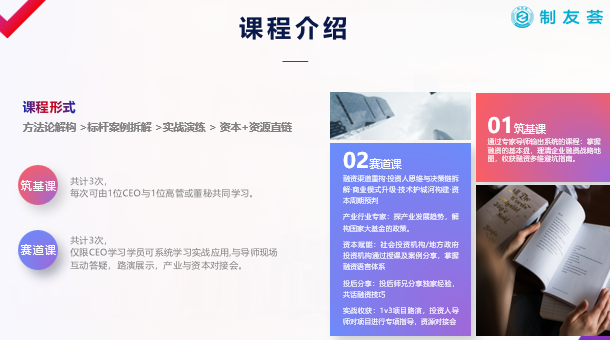 通过专家导师输出系统的课程:掌握融资的基本盘,理清企业融资战略地图,收获融资多维避坑指南。