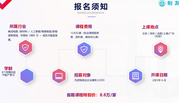 仅限CEO学习学员可系统学习实战应用,与导师现场互动答疑,路演展示,产业与资本对接会。