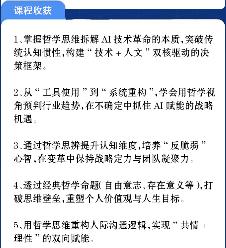 1、掌握哲学思维拆解 AI技术革命的本质,突破传统认知惯性,构建“技术+人文”双核驱动的决策框架。