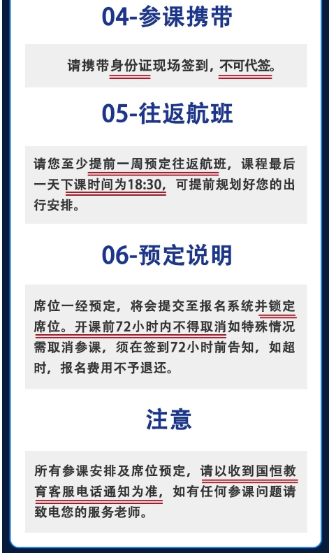 所有参课安排及席位预定,请以收到国恒教育客服电话通知为准,如有任何参课问题请致电您的服务老师。