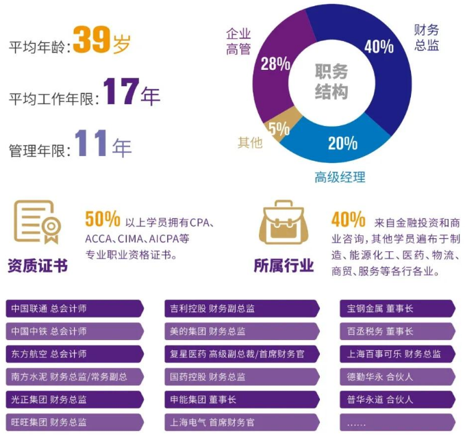 〔层次高端〕顶级师资,财界精英同窗,全方位提升专业能力、商业素养、领导力和高端精英人脉;〔专于财会〕专业才能成就高度和深度,专业才是核心竞争力。