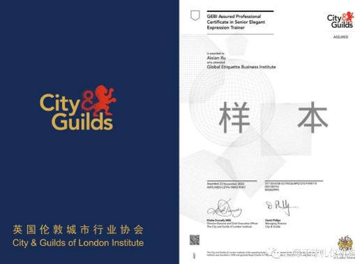 英国伦敦城市行业协会(City & Guilds)证书优雅仪态培训师证书样本