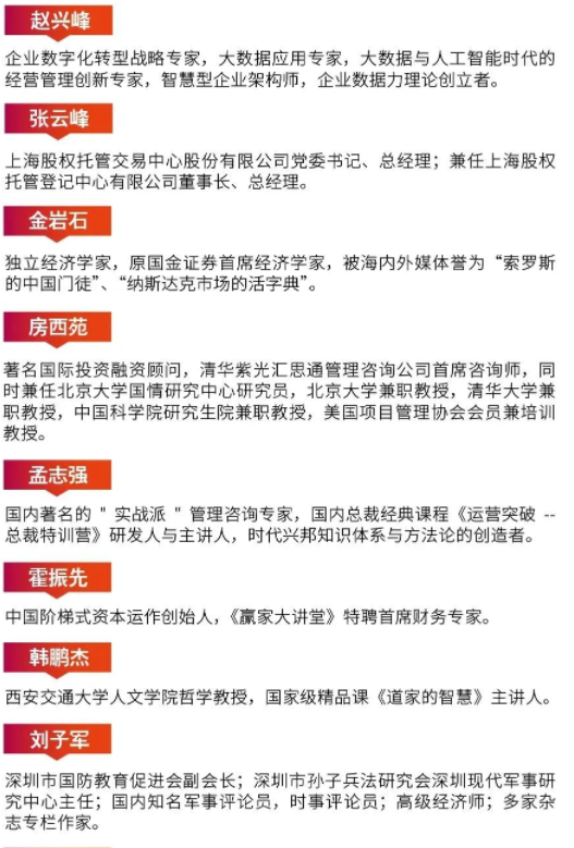 01招生对象各行业企业董事长、总裁、总经理、股东等高层决策者;