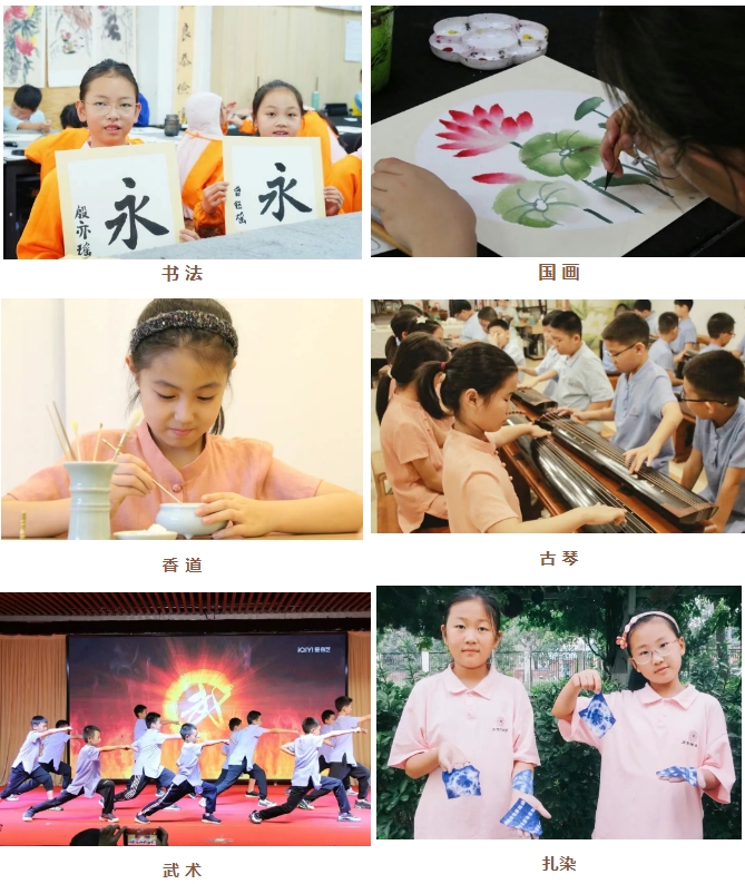 涵盖茶道、花道、书法、国画、非遗手工等丰富多样的国艺课程,每天内容不同,让孩子们在动手实践中体验传统艺术的美感和乐趣,培养审美情趣、艺术修养和匠人精神,同时锻炼手脑协调能力和创造力。