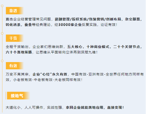 大道化小,人人可操作,实战性强,拿回企业就能落地应用,直接变现!