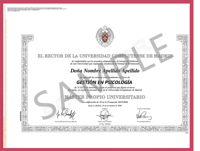 顺利完成课程,符合毕业条件的学生将获得 UCM 大学颁发的心理学 硕士学位证书及成绩单。