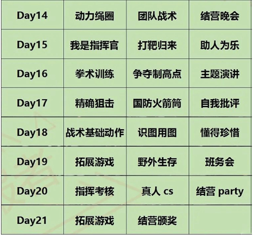特色主题: 军事/吃苦/户外/拓展/心智/励志