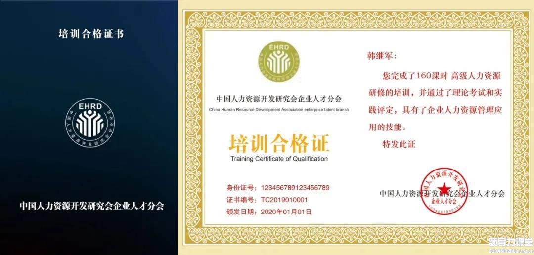 结业后由“中国人力资源研究会”颁发“中国人力资源研究会企业人才分会”的结业证书。