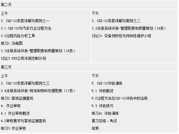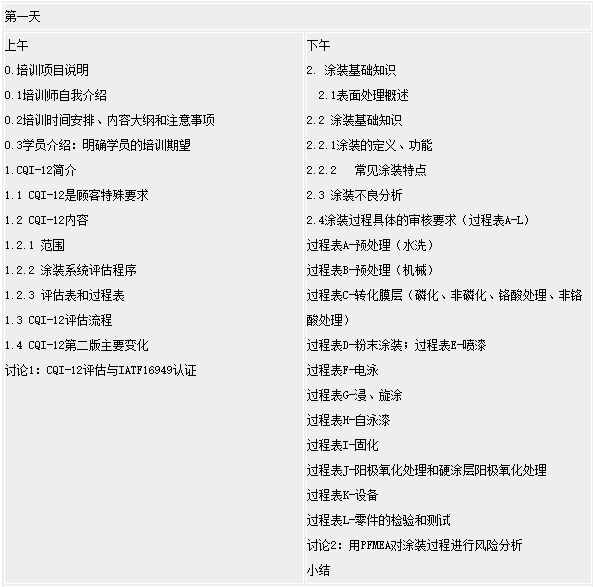 1.全面了解涂装系统审核(CQI-12,第2版)要求和相关技术标准的要求;