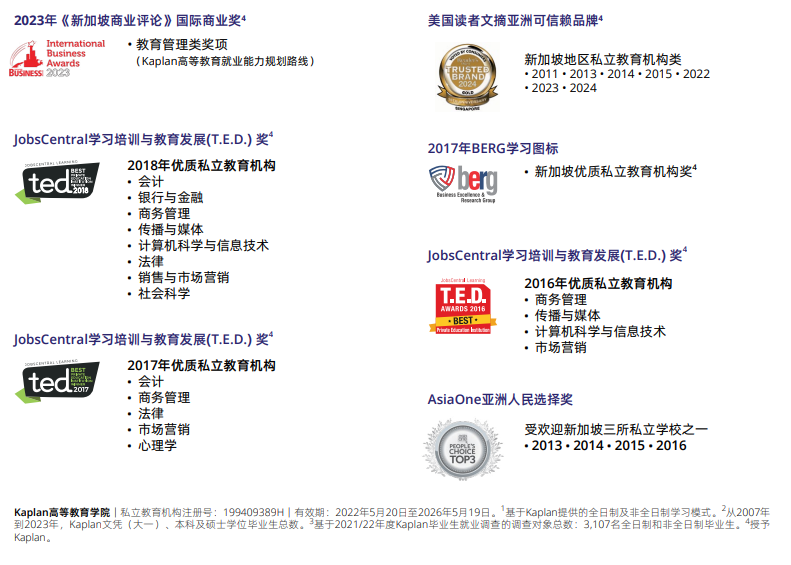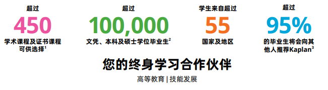 在Kaplan,我们理解学生需要追求高质量的教育,以实现自身的职业目标。作为广泛的学术课程提供者之-,Kaplan提供从文凭到本科及硕士学位课程,让学生选择自己感兴趣的领域,并通过灵活的学习模式和规划表来平衡学生的时间和精力。