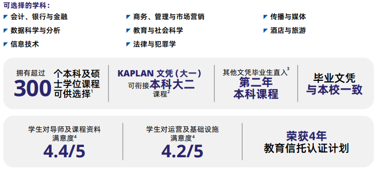Kaplan致力于通过高等教育和技能发展提供优质教育成果。因此,Kaplan的学生将体验到注重毕业成果的全面教育,并提高他们的就业能力。