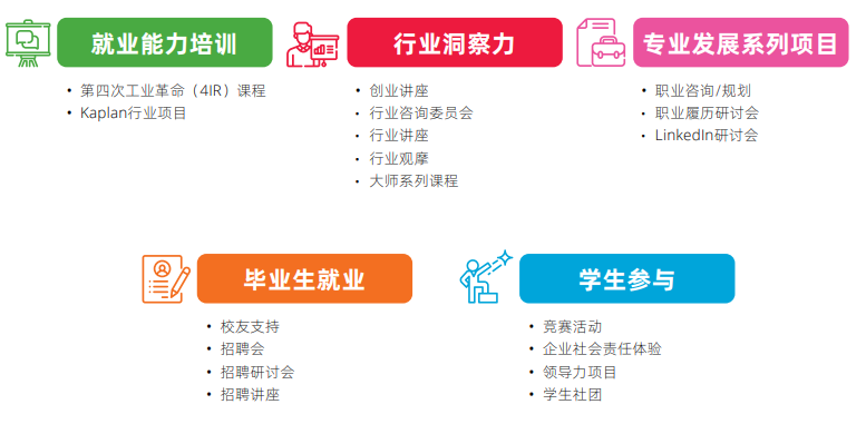 Kaplan有一系列全面的举措来完善学生的学术学习,包含指导学生建立专业形象、学习软技能、技术及数字技能以帮助学生为毕业后的生活做好准备。这些举措促进了学生们以技能为基础的学习,帮助毕业生在就业和行业发展中做好准备,在现实世界中发挥重要影响。