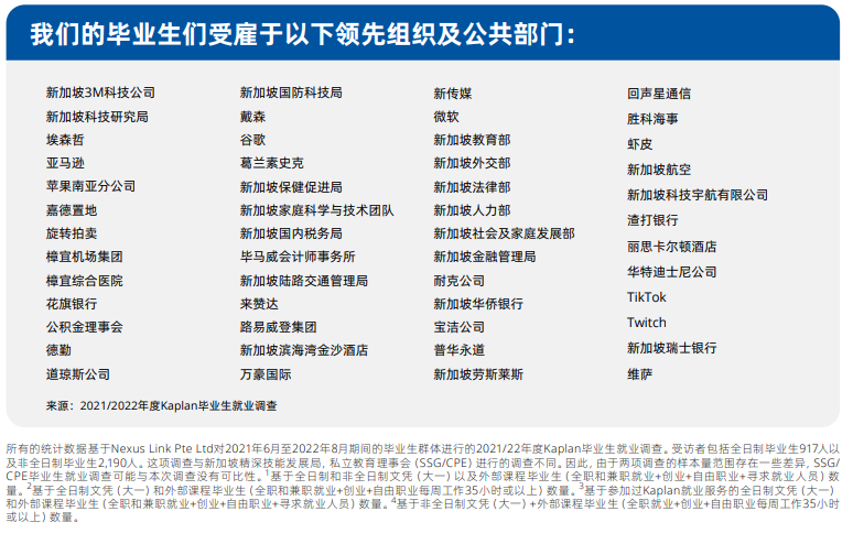 学士学位毕业生可以继续攻读硕士学位课程,也可以在新加坡或国际社会找到工作。Kaplan的就业服务可帮助你在就业和行业发展中做好准备,在现实世界中发挥重要影响。