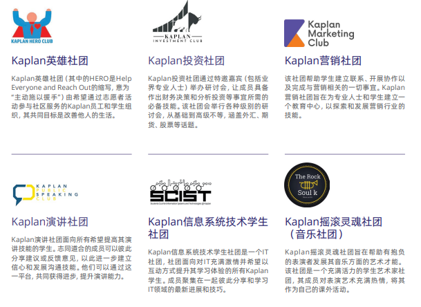 获得Kaplan校友社团的终身会员资格,与其他毕业生进行交流,享受免费的职业指导等福利。