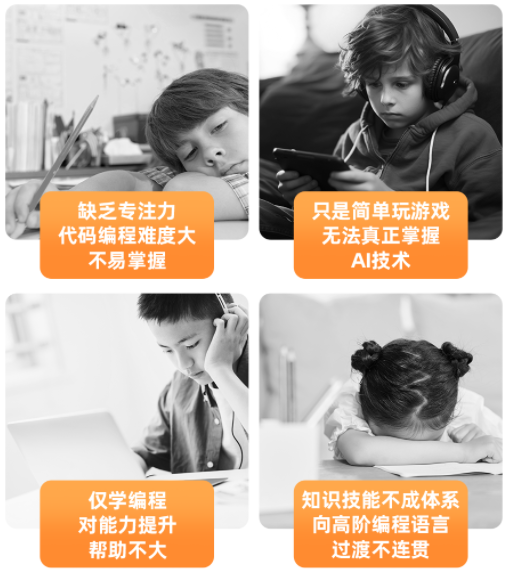 使用Scratch简易图形化编程工具,帮助学员通过拖拽式、模块化方式实现程序编写。