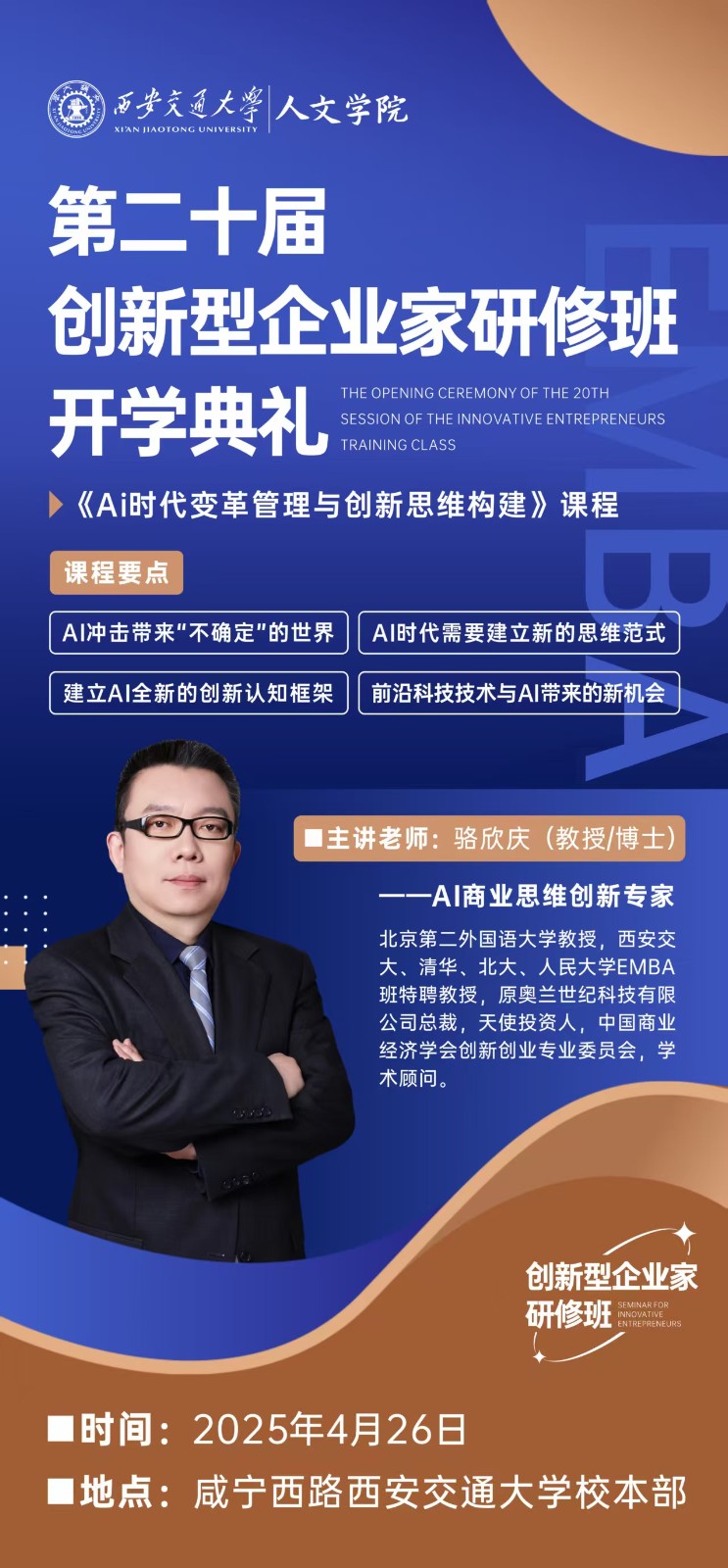 2025年4月26日西安交通大学第二十届创新型企业家研修班开学典礼_骆欣庆_AI时代变革管理与创新思维构建