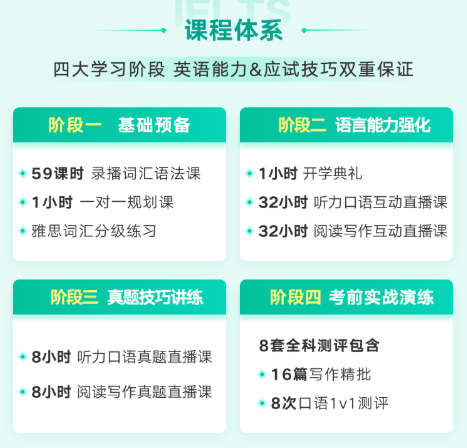 雅思正版官方真题库 专业作文精批 1对1口语测评 VIP备考规划 阶段测评 授课教师答疑辅导 班级群交流 讲练结合 短信提醒