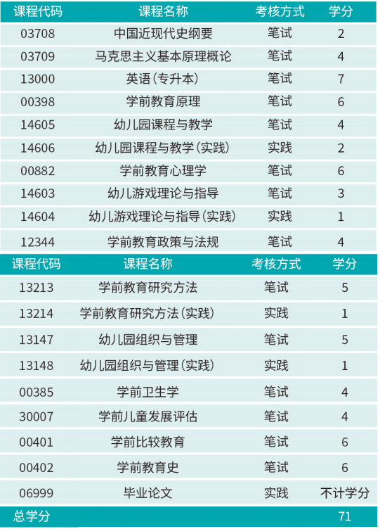 学前教育(专升本)专业考试计划