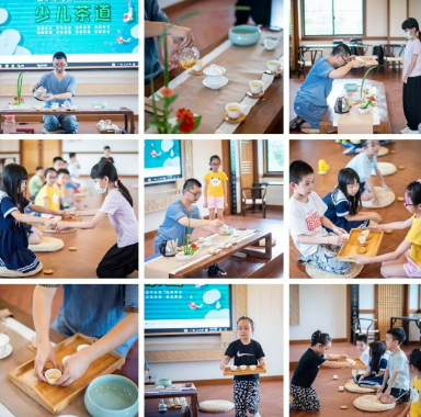 四、少儿正念茶道。该课程构建少儿茶学体系,通过五感辨识六大茶类工艺与地域特征,融入《茶经》"烂石生茶"生态智慧。以禅修"水线凝视法"训练专注力,结合“天地人三才”、"五行配色"美学法则,指导竹编茶荷等天然材料布席。五感联觉训练借《七碗茶歌》贯通触觉(润喉)、情绪觉(破闷)至超验觉,依托自然茶会深化天人合一观。