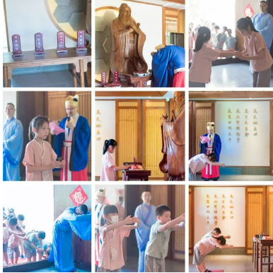 流程:书院山长致辞——祭孔——开笔礼——朱砂启智——击鼓鸣志——礼成