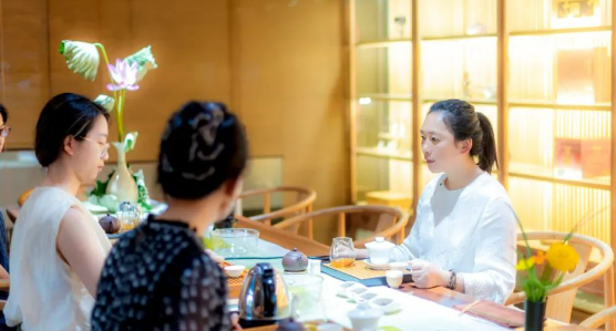 从温杯洁具到正念泡茶,每个动作配合呼吸节奏。茶礼教学不仅学习"伸掌礼""叩指礼"等礼仪符号,还学会行茶、奉茶、饮茶中的整个的礼仪内涵。