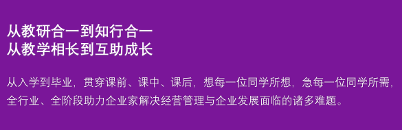 秉承“知识学习系统性+实践应用有效性”的双目标学习导向,注重学员学习成果的落地转化,注重知识应用场景与经营管理实践的有效链接,打造每一个问题都有答案,每一个难题都有解决方案的实战课堂。