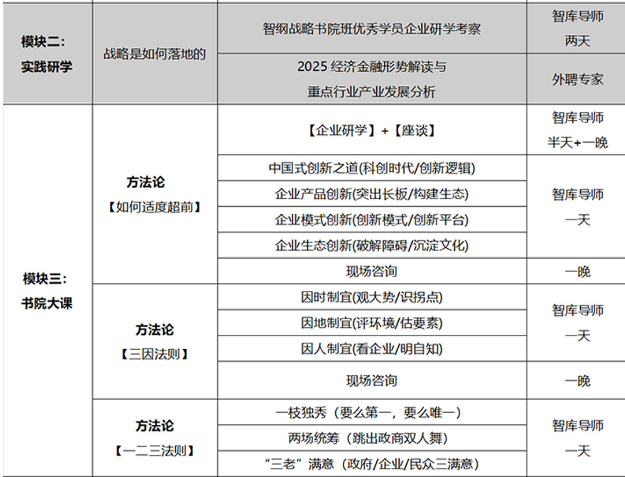 模块三: 书院大课 | 方法论 【如何适度超前】 | 【企业研学】+【座谈】 | 智库导师 半天+一晚 |