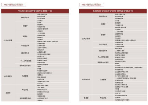 五:MBA课程表。