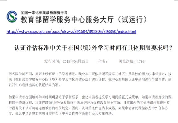 九:教育部留学服务中心网上截图的中国国境外认证政策。